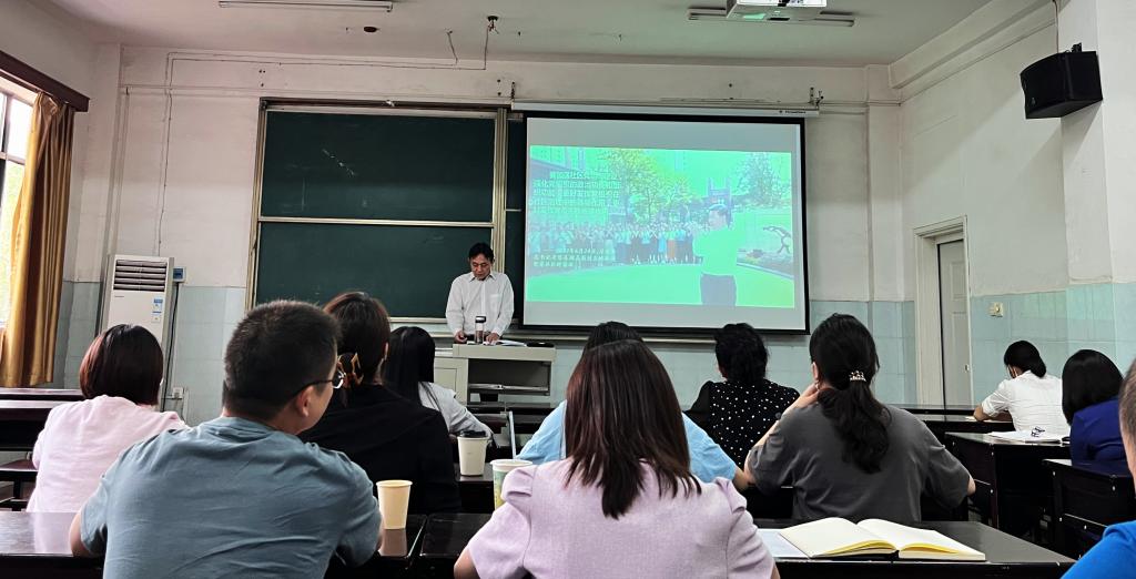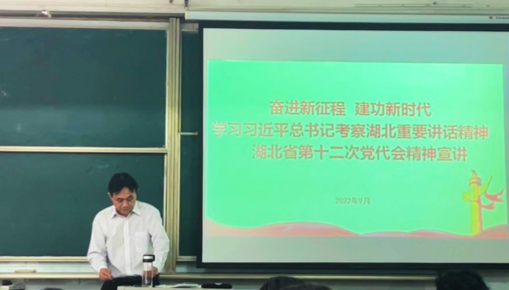 郑全新书记继续带领全体教职工学习湖北省第十二次党代会精神,讲述了湖北省过去五年的工作成绩,即“七大成就”,以及过去五年工作的经验启示,即“五条经验”。并要求准确把握未来五年湖北省发展的工作目标和举措,着重介绍构建“一主引领,两翼驱动,全域协同”的湖北新发展格局。并提到,面对新发展阶段湖北面临的新形势和新任务,要胸怀大局,把握时代特征;要心系家国,把握发展内在要求;要强基固本,把握优势条件。