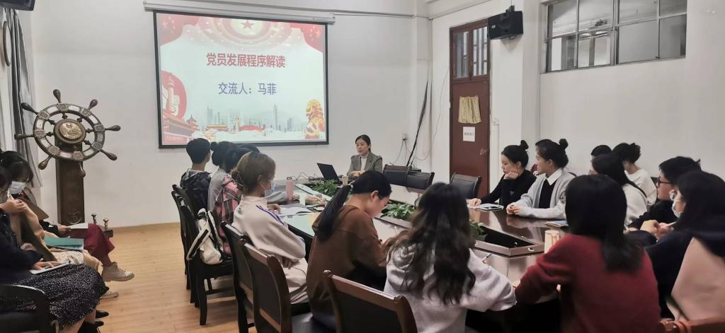 马菲老师就入党积极分子的确定和培养教育、发展对象的确定和考察、预备党员的接收、预备党员的教育考察和转正四个方面展开了讲解。