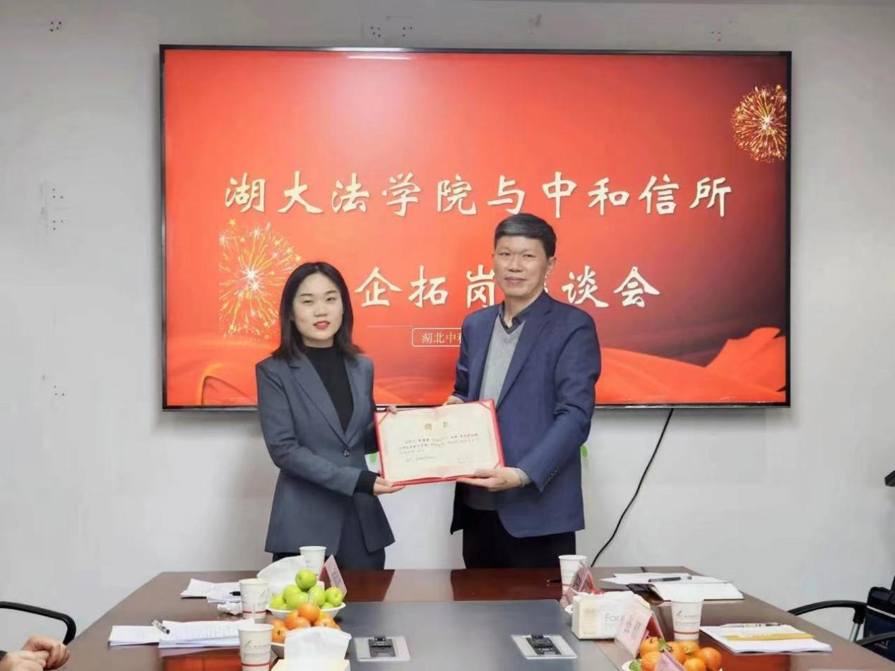 最后,公司党委书记焦新曦为中和信律所张倩倩律师颁发了“法律专业学位硕士研究生校外导师”聘任证书。