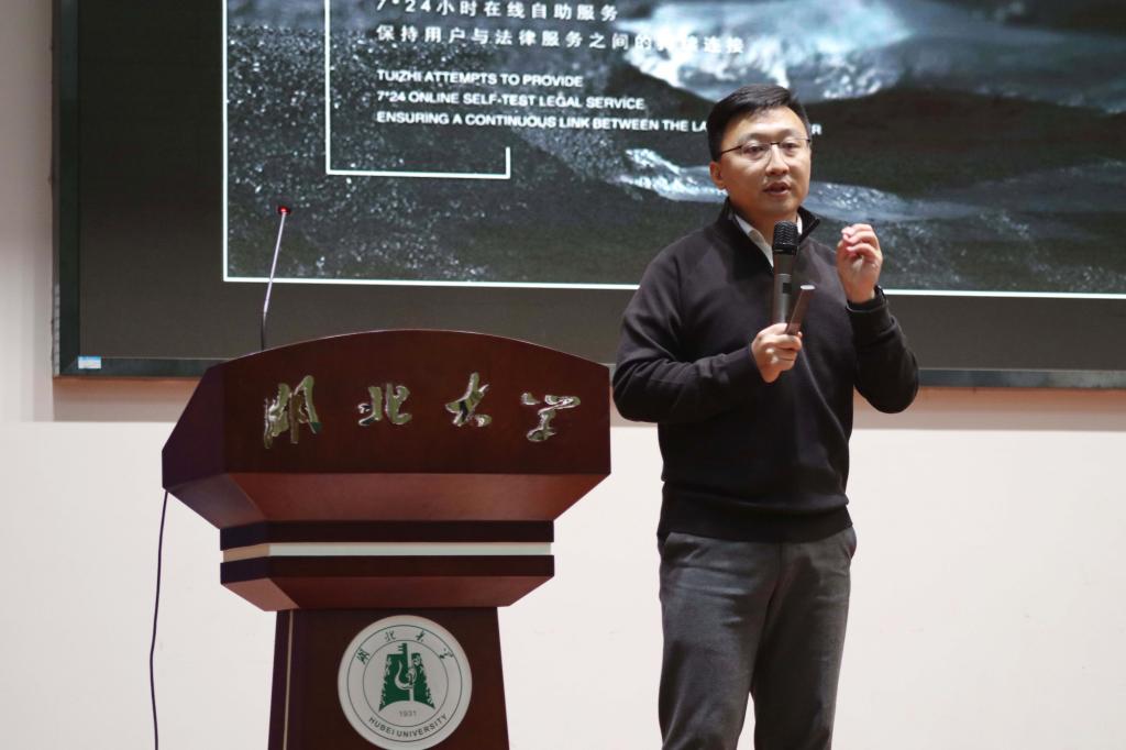 下午14:30,讲座正式开始。王亚哲老师将本次分享分为“我”、“我们”、“他们”三部分。在“我”的部分,王亚哲老师介绍了自己的大学经历。在大学期间,王亚哲老师担任班长、员工会主席、社团会长和足球队教练,公司的各项活动中都有他的身影。王亚哲老师谈到:“今天做了别人不愿意做的事情,明天就可以做别人做不了的事情”。大学的经历不断影响与塑造着王老师,让他在未来可以行己所爱、行己所能。在“我们”的部分,王亚哲老师讲述了自己和小伙伴们的创业过程。在大众创新、万众创业的背景下,他主动抓住法律人工智能的风口,从推之到法蝉再到哲响,不断改进,不断提升。他表示:“做成任何一件事,都要抛弃执念,在自我否定与肯定中前进”。丰富创业经历让王老师找到同行者,并一起不断前行。在“他们”的部分,王亚哲老师介绍了在法律行业中不同职业的优秀榜样,为我们展现了法律人的多种可能性。王老师强调,我们不必拘泥于公检法的传统思维,也不必给自己设限,应该将优秀榜样作为标杆,并进行学习与超越。最后,对于“法律人的未来,有多少可能?”这一问题,王亚哲老师总结到:要找到自我,找到所爱所能;要找到同行,选择一份事业;要找到结果,寻找人生的标杆。