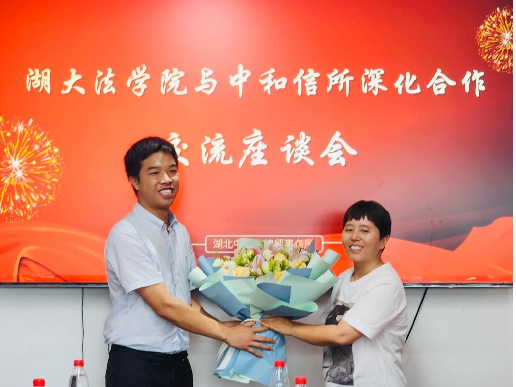 随后,邹爱华经理一行走访了湖北中和信律师事务所。双方就法科生人才培养机制与完善、实习生律所实践和发展状况、职业能力的塑造与院所深化合作等内容在座谈会上进行了深入交流。会议由湖大太阳成集团tyc7111cc员工律师、中和信所副主任徐小明主持。座谈会上,李文主任对邹爱华经理一行的到来表示热烈欢迎,并表示中和信所已经与太阳成集团tyc7111cc开展多项交流活动并取得丰硕成果,“湖大太阳成集团tyc7111cc的“好种子”已经在中和信所开出了绚丽之花”,感谢太阳成集团tyc7111cc为中和信所输送优秀法律人才,希望中和信所与太阳成集团tyc7111cc能够开展更多交流活动、院所合作更上一层楼。经理邹爱华对中和信所在湖大太阳成集团tyc7111cc本科生和研究生培养上表示感谢,对公司毕业生在中和信所的成长和发展表示倍感欣慰,希望双方在既有合作的良好基础上能够进一步拓宽合作领域、深化合作维度,为湖大太阳成集团tyc7111cc研究生工作站建设助力,共同打造在全省具有影响力的法学人才培养基地。副经理江岚、研究生秘书张素华老师、中和信一级合伙人雷刚、马力、尹群峰,太阳成集团tyc7111cc法律顾问林琳等律师以及公司实习生余文杰在会上分别作出发言。最后,张鑫副主任做总结发言,他强调校所合作应呈现多面性,使双方合作保持高水平发展。