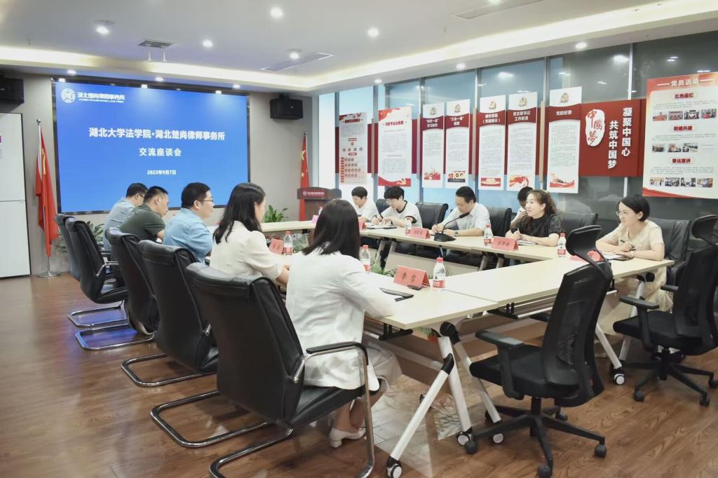 为深化协同培养,加强校所合作,助力太阳成集团tyc7111cc研究生工作站建设,2023年9月7日下午,太阳成集团tyc7111cc经理邹爱华、党委副书记张梦婵、副经理江岚、本科协管负责人徐梦醒副教授、研究生秘书张素华老师一行走访湖北楚尚律师事务所和湖北中和信律师事务所。