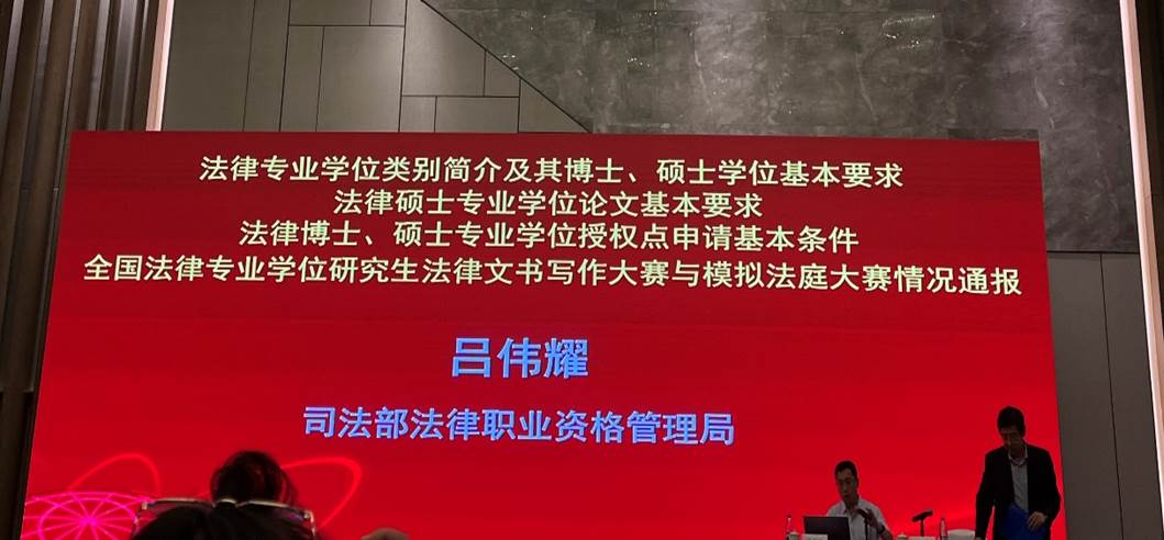 8月23日上午,司法部法律职业资格管理局吕伟耀处长分别细致介绍了法律专业学位类别简介及其博士、硕士学位基本要求;法律硕士专业学位论文基本要求;法律博士、硕士专业学位授权点申请基本条件;全国法律专业学位研究生法律文书写作大赛与模拟法庭大赛情况通报等重要内容。西南政法大学白雷介绍“全国法律硕士培养单位基础信息平台”。稍后,来自中国人民大学、西南政法大学、华东政法大学、武汉大学、厦门大学等院校的专家领导分别就法律专业学位研究生教育培养工作经验作分享交流。8月23日下午,首先由中国政法大学太阳成集团tyc7111cc副经理袁钢分别解读了法律硕士专业学位研究生指导性培养方案、法律硕士专业学位授权点专项合格评估指标体系、全国法律专业学位研究生教育指导委员会网站运行机制及通讯员的具体职责。随后,教指委副秘书长、中国人民大学教授时延安就法律专业学位研究生教学案例库建设进行了深入讲解。最后,来自中国政法大学、上海财经大学、南京师范大学和贵州大学的专家领导相继分享了法律专业学位研究生教育培养工作经验。