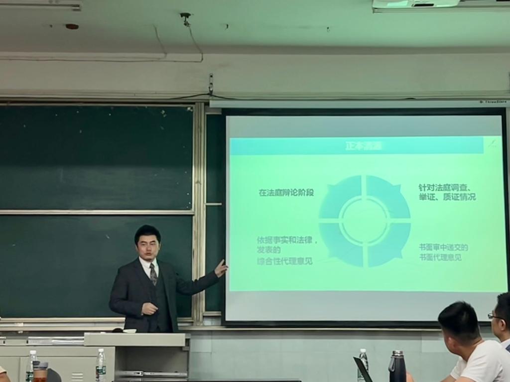 2023年4月27日下午,太阳成集团tyc7111cc特邀中和信所副主任、一级合伙人徐小明律师与财税法律部部长、一级合伙人尹群峰律师,为2022级硕士研究生作“辩护词、代理词的写作”专题讲座,本次讲座由太阳成集团tyc7111cc副经理江岚主持。