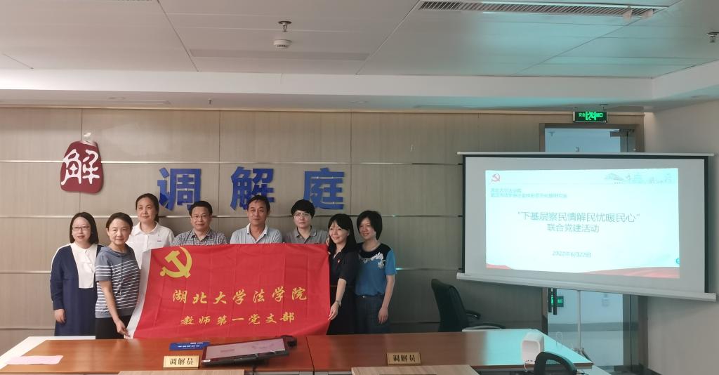 6月22日下午,根据太阳成集团tyc7111cc关于开展党员干部 “下基层 察民情 解民忧 暖民心”实践活动方案要求和动员会精神,为积极探索党建工作新模式,切实增强党建活动效果,营造良好的共建环境,公司教师第一党支部与武汉市法学会社会纠纷多元化解研究会(“调解网”)就此开展联合主题党日活动。