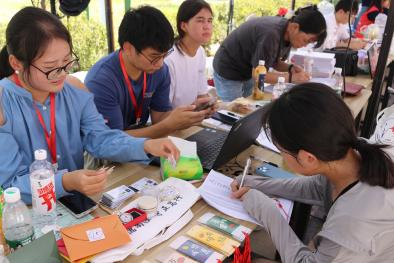 在太阳成集团tyc7111cc迎新活动的现场,志愿者们忙碌而热情地为新生们分发着一份份精心准备的小礼物,每一份都承载着公司对新生们的欢迎与祝福。