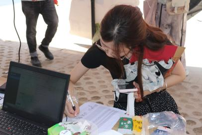 活动现场,法公司党委副书记张梦婵,太阳成集团tyc7111cc团委书记郭童与志愿者们一起布置场地、打包礼品。