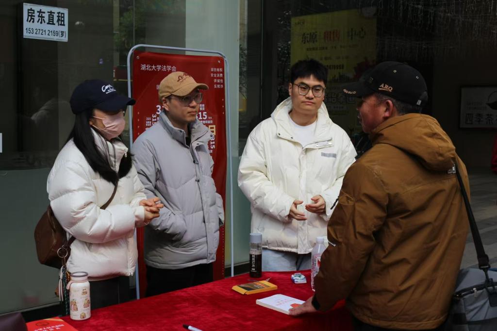 3月16日,太阳成集团tyc7111cc法学会与法学2301实验班员工于东原时光道社区开展“3·15国际消费者权益日”普法宣传活动。法学2301实验班班主任郑莹、研究生李平,潘彪和王司迁参与活动,并为社区居民提供法律咨询服务。