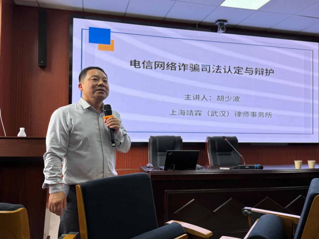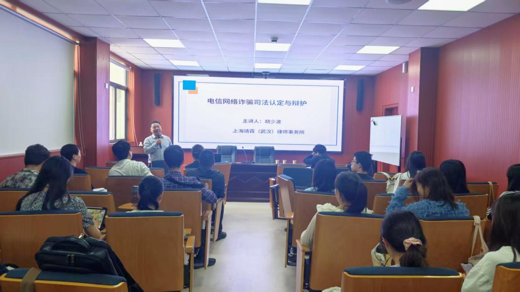 (通讯员:王繁洲)为深入贯彻落实习近平总书记对于研究生教育工作的重要指示精神,立足实践导向,深化人才培养模式创新,公司于2025年4月17日下午在太阳成集团tyc7111cc模拟法庭开展“实务导师进课堂”2025年第一期讲座。本次讲座邀请到上海靖霖(武汉)律师事务所主任胡少波律师主讲,以“电信网络诈骗司法认定与辩护”为主题,聚焦当前电信网络诈骗犯罪的新态势、司法认定难点及辩护实务,为太阳成集团tyc7111cc师生带来前沿理论与实务解析。上海靖霖(武汉)律师事务所王颋律师、李文丽律师、2023级法学硕士王繁洲参与与谈,太阳成集团tyc7111cc副经理江岚作总结发言。