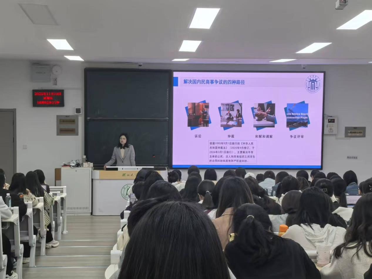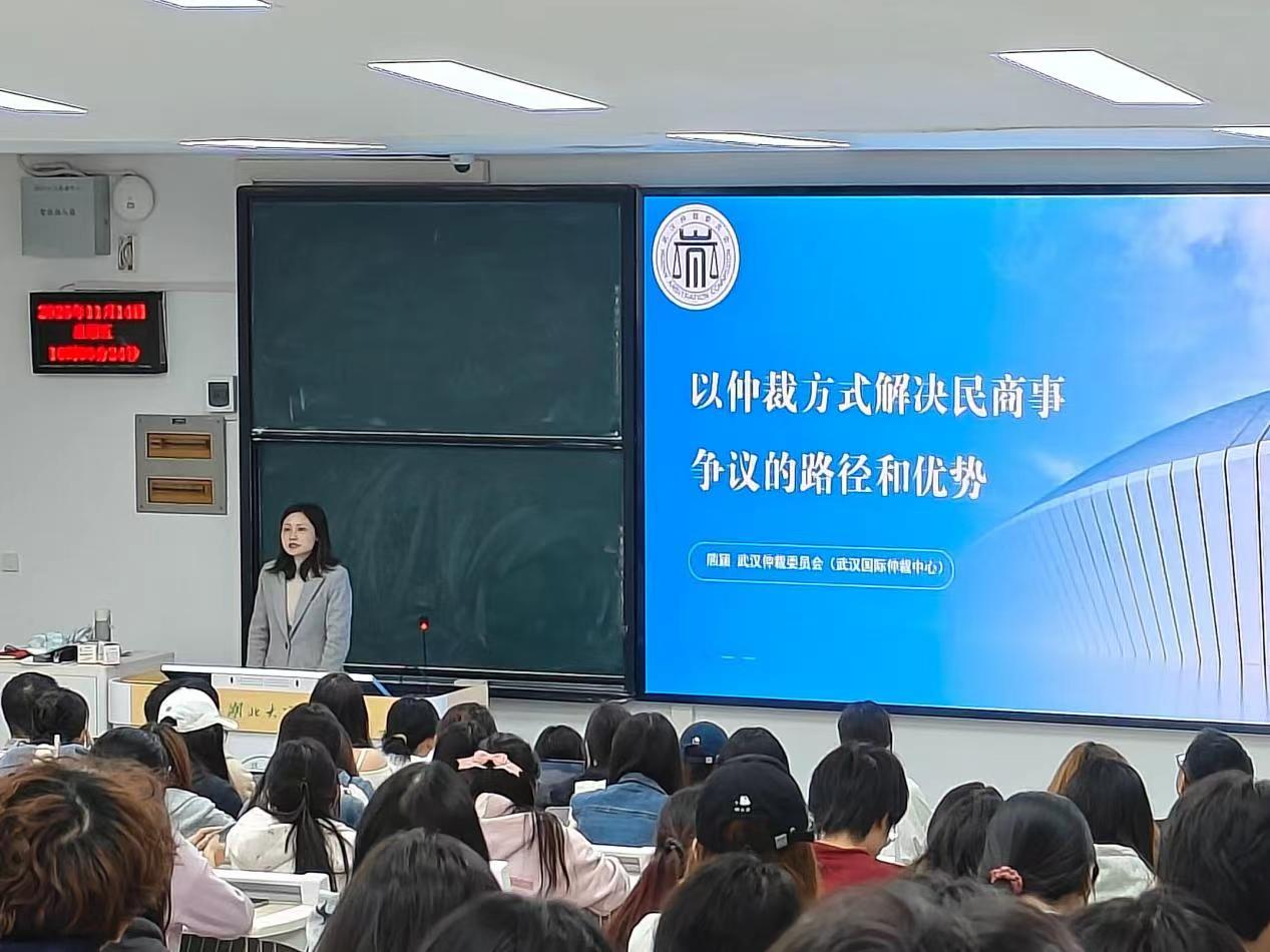 (通讯员:杨浩杰)为帮助太阳成集团tyc7111cc学子进一步理解仲裁理论、了解仲裁发展,2025年11月14日下午,太阳成集团tyc7111cc邀请研究生校外导师、武汉仲裁委一级秘书熊颖老师,在教4-507开展了主题为《以仲裁方式解决民商事争议的路径和优势》讲座。