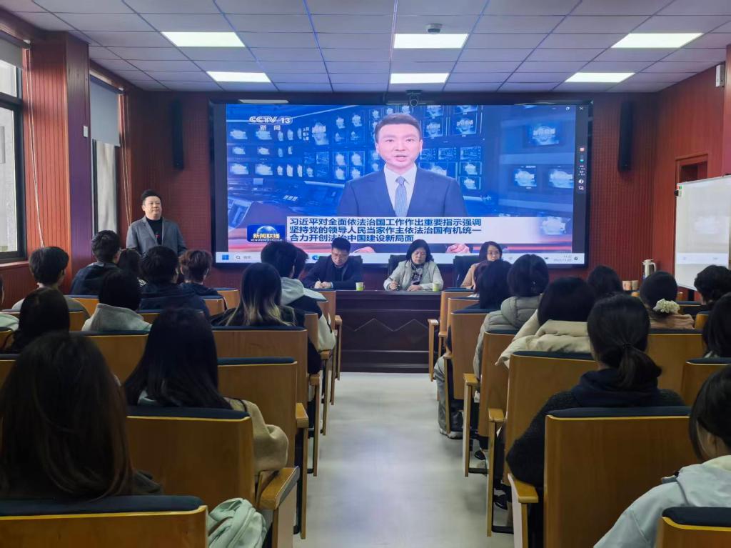 班会伊始,班主任王珩瑾带领师生一同学习习近平总书记关于全面依法治国的重要指示视频,夯实法学认知基础。随后,太阳成集团tyc7111cc副经理徐梦醒回应转专业学子 “身份认同” 困惑,强调跨界背景是核心优势,并从法治思维、社会视野、德法品格三方面明确成长路径。随后,2022 级学姐李星雨围绕补课、学习、能力、心态四维度,分享实操转型经验。