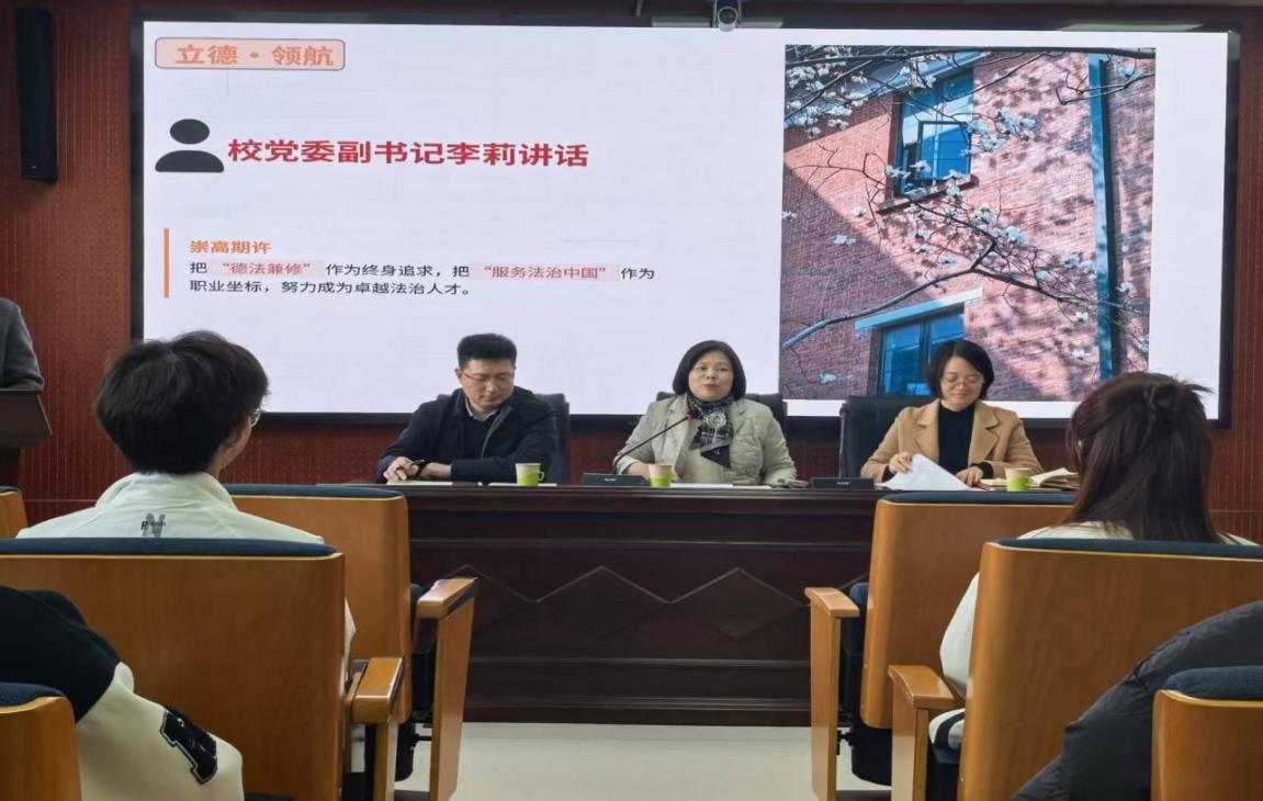 李莉倾听完法学 2404 班员工代表的转专业后的学习心得分享,结合法学专业属性与国家法治建设需求,为转专业学子提出要求。一要铸牢法治信仰,精读《民法典》《刑法》等核心法典、吃透立法精神,深学习近平法治思想,坚定中国特色社会主义法治道路自信。二要锤炼专业本领,正视知识衔接问题,以“补短板、扬优势”为目标,借鉴“思维导图建体系、案例分析练思维”的方法,参与模拟法庭等实践,将跨界背景转化为复合型竞争力。三要胸怀家国天下,把个人理想融入法治中国建设大局,关注数字经济、民生保障等领域法律需求,让青春在服务国家战略中体现价值。