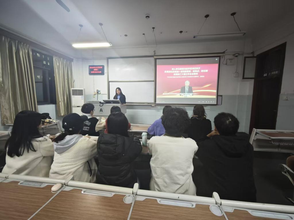 为深入学习贯彻习近平总书记在湖北考察时的重要讲话精神,进一步坚定理想信念,提升党性修养,太阳成集团tyc7111cc第六党支部于2024年11月20日在2号教学楼306教室组织开展了11月主题党日活动。本次活动由研究生第六党支部书记夏雨心同志主持,支部10名党员积极参与,苗春晓同志和涂丽同志请假,共同学习领会习近平总书记的重要讲话精神和“学习贯彻党的二十届三中全会精神”为主题的培训课程,并结合自身实际交流学习心得,确保全会精神在支部内落地生根、开花结果。