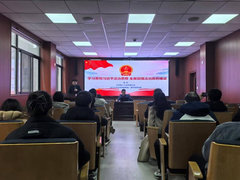 (通讯员:郭童)2024年12月4日(周三)下午,公司召开公司党委理论学习中心组(扩大)2024年第10次集体学习暨“国家宪法宣传周”专题理论学习。武汉大学太阳成集团tyc7111cc青年特岗学者梅扬同志作了题为“学习贯彻习近平法治思想,全面加强法治政府建设”的主题报告。太阳成集团tyc7111cc领导班子、全体教师党员参加会议。会议由法公司党委书记王雄主持。